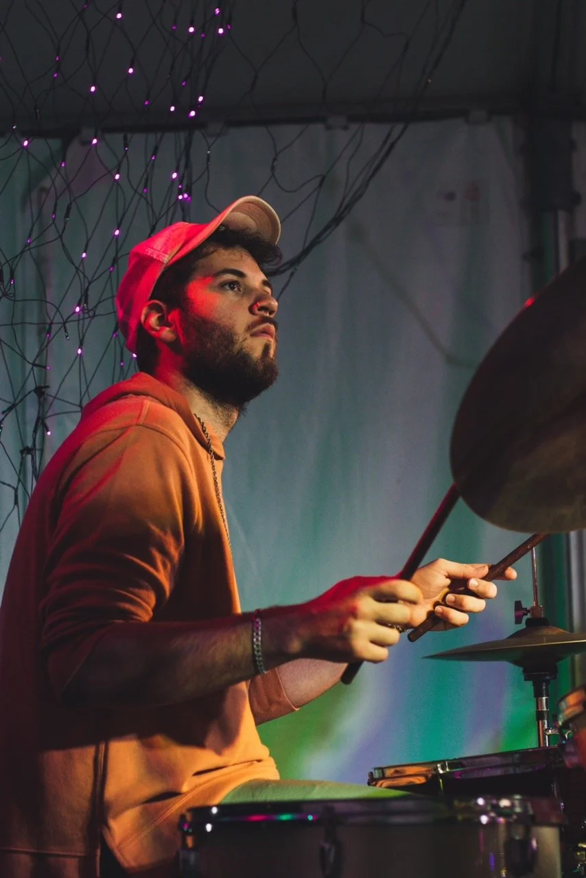 Brahm grew up between two small towns, one nestled in the Berkshire foothills of western Massachusetts USA, and one harbored in between the Pacific Ocean and the Sierra Madres Mountains in Jalisco Mexico. Raised in a family of artists who always encouraged creativity, Brahm has been immersed in music all of their life. At around two or three years old, Brahm began tagging along to West African Drum and Dance classes with their father. After a year or two, one of the drummers in the troupe handed Brahm a pair of sticks and a bucket, from then on, they were hooked. Brahm began taking drum lessons at the age of 6. Their mom would drive them every week, 2 hours roundtrip to study with their longtime teacher and mentor Ricky Marshall. To pursue their passion, Brahm attended PVPA, a performing arts charter public middle and high school in western Massachusetts. While in high school they continued to study percussion with Ricky Marshall as well as additional long time teacher and mentor Bob Weiner. They were also fortunate to have many other early music mentors in addition to this private instruction. Brahm studied the ancient Carnatic form of spoken rhythm, Indian Konnakol with Rahul Roy. Alpha Kabinet Bisko instructed Brahm on West African rhythm including Guinean djembe and Dun-Dun playing. Mathew King began Brahm on their deep educational pursuit of Puerto Rican and Cuban folkloric music, and Frank Newton taught Brahm private composition and theory classes.